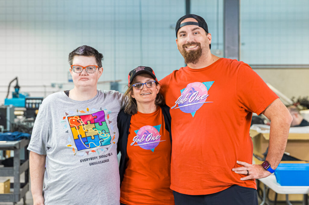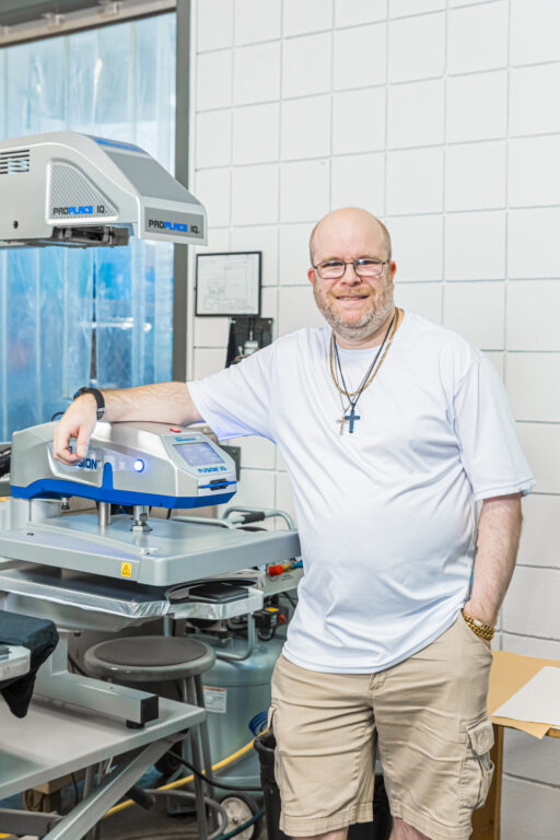 Jacob is a highly dedicated worker, not only at Job One but in the community as well. He loves giving tours and being ready to walk people through our processes! When we have guests, it’s almost a guarantee that Jacob will know them! Jacob specialized in embroidery – he is our go to guy for hooping and threading.